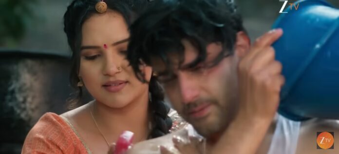 Following Dadiās idea, Dev ends up bathing outside while keeping a towel wrapped around himself. Vasudha stands by his side, helping him manage the situation and making sure he feels comfortable. Their sweet chemistry and playful banter during the moment create a warm, romantic atmosphere.